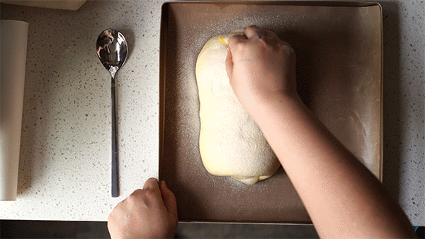 一发发到手指蘸面粉戳洞,洞不回缩就是可以了,不要发过,整形之后二发,发到两倍大小,然后撒粉,割包