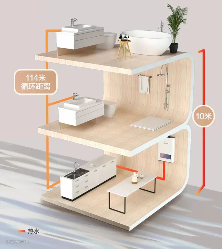 零冷水热水器就解决了这个尴尬,通过回水管使热水循环,无需等待放冷水。现在有很多高品质的燃气热水器也考虑到了别墅使用需求,内置直流增压泵,扬程范围能够做到10米甚至更高,水循环距离达到110米+,完全可以满足多层别墅需求。