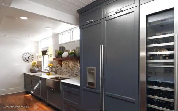 【受面积限制】嵌入式冰箱虽然好,但不是所有的厨房都可以选择这样的冰箱,这冰箱对厨房的面积有一定的要求。若要选这种冰箱,一定要计算好自己家的厨房是否能满足一定的面积。为了避免受潮受热,冰箱要离水槽和煤气灶有一定的距离。按照水槽和煤气灶约900厘米至1米之间,其中水槽与煤气灶之间的操作台约800厘米,冰箱一般是宽600厘米,它与水槽或煤气灶的距离约600厘米之间,所以,橱柜的长度约4.2米才合适。