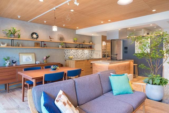 这栋房屋已有40年历史,屋主夫妻相当喜欢周遭环境的氛围,决定请来设计团队将住宅全面翻新。设计团队将空间打造成如咖啡厅般舒适温暖的氛围,玄关落尘区的人字拼地砖与公领域架高木地板做出空间分野,以开放式格局规划客餐厨。