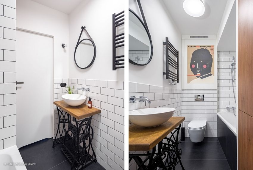 对小坪数来说,拥有通透感是设计重点之一。由设计团队所改建的这幢公寓,因屋主夫妻对于风格已有明确期望,于是材料与色调以黑、白、绿与原木色为主轴,在50平空间中先以温润木质调铺排全室,并辅以哑光黑厨具、经典黑 SMEG 冰箱与之产生对比,在冷暖色彩间取得平衡。