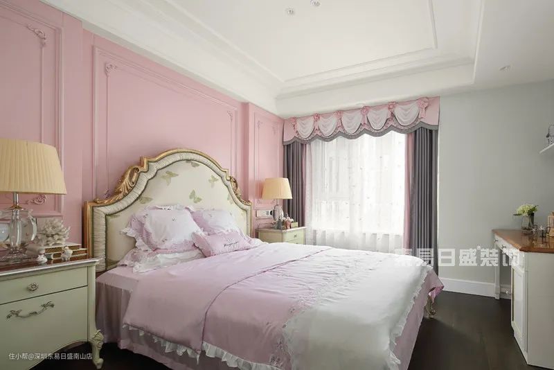 粉嫩的儿童房满屋子的少女心粉色的窗幔既有公主风的梦幻也能给孩子带来足够的安全感