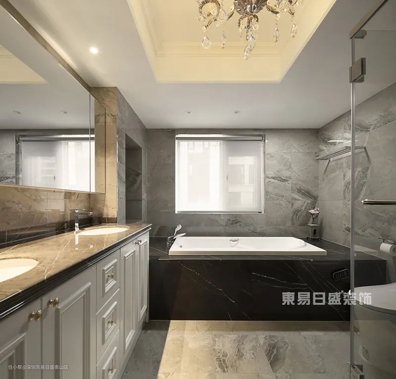 灰色系的卫生间给人的感觉圣洁高贵充满了法式特有的贵气大浴缸里泡个美人浴舒解掉一天的疲劳
