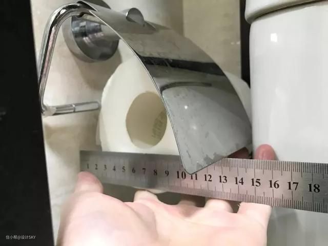 ▲样板房卫生间里的纸巾架,真的能挂进去毛巾吗?这位读者用尺子量出了心酸的体验。