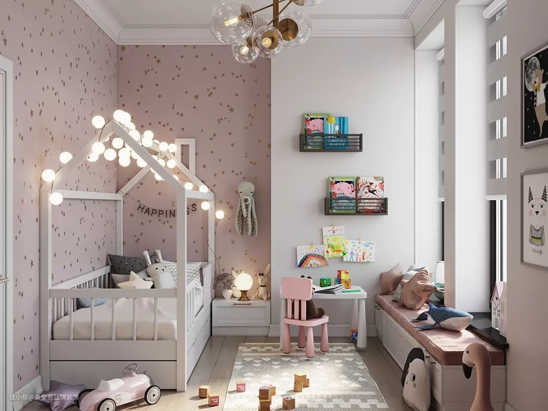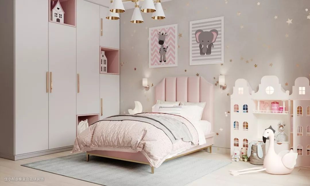 女孩子的配色多以粉色、黄色、白色等,营造一个浪漫粉嫩的小公主空间。