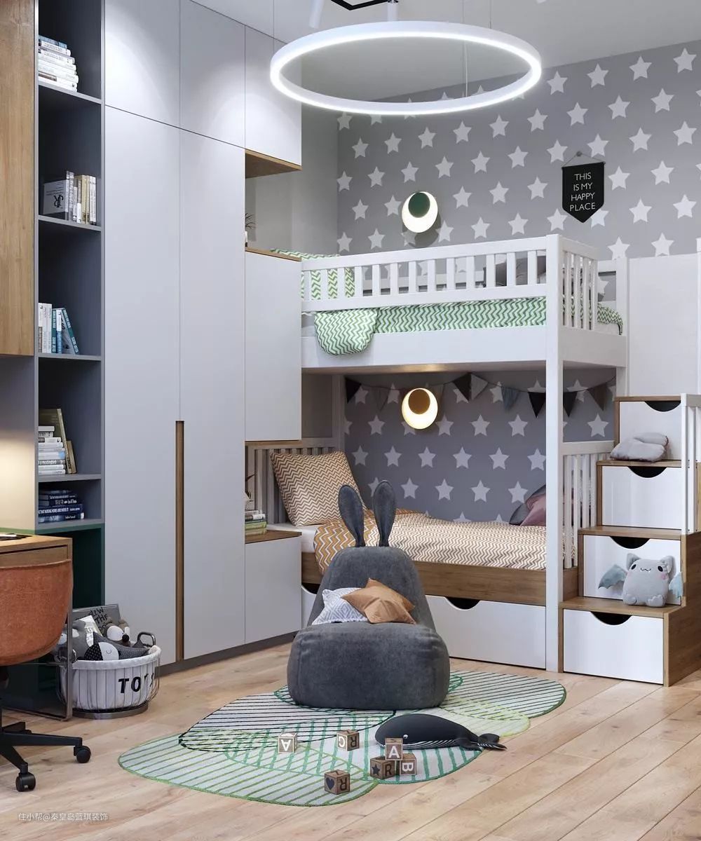 下面给大家分享男孩房、女孩房和二胎房的效果图,希望能给大家提供些装修灵感。