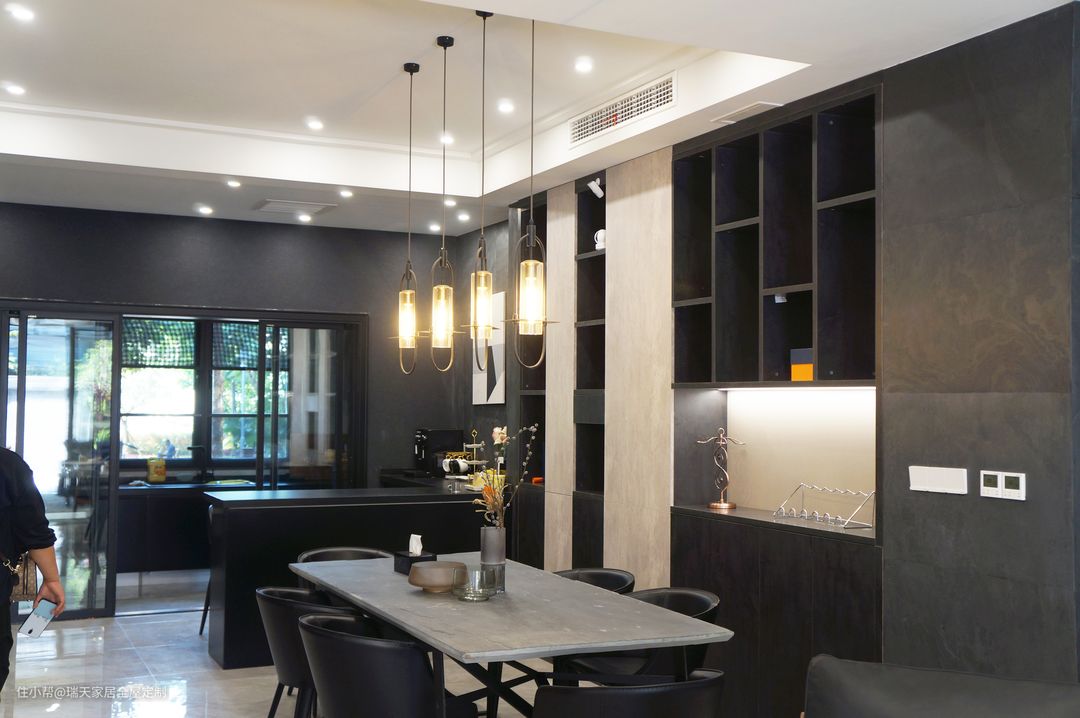 ▲餐边柜与L型的吧台相互呼应 ,旨在营造一个开放浪漫的用餐环境。