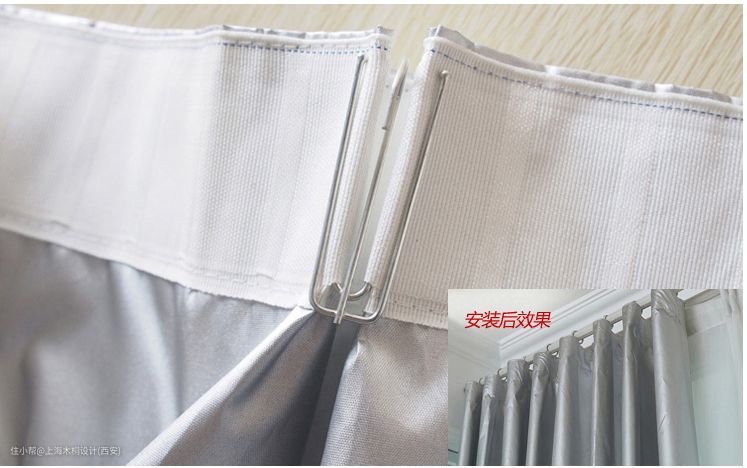 ④窗帘悬挂方式,智能窗帘对窗帘的悬挂方式要求为挂钩方式,不能选用穿孔式的。