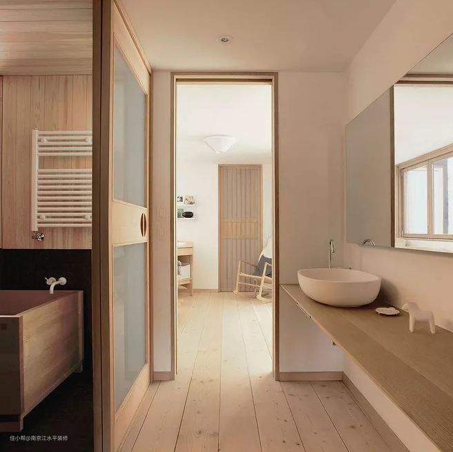 卫生间的空间利用,就算卫生间的下水管也可以利用起来,可以包起来之后做成壁龛。壁龛可以放洗发露等物品,壁龛的清洗也很方便,洗澡的时候直接用水冲洗一下就行,根本不怕被水汽“侵蚀”。马桶上方也可以利用起来,安装一个收纳架,可以放换洗的衣物;或者放可移动的置物架;洗手台可以用瓷砖做,靠近马桶的一侧可以做几个格子,用来放手机和纸巾等。