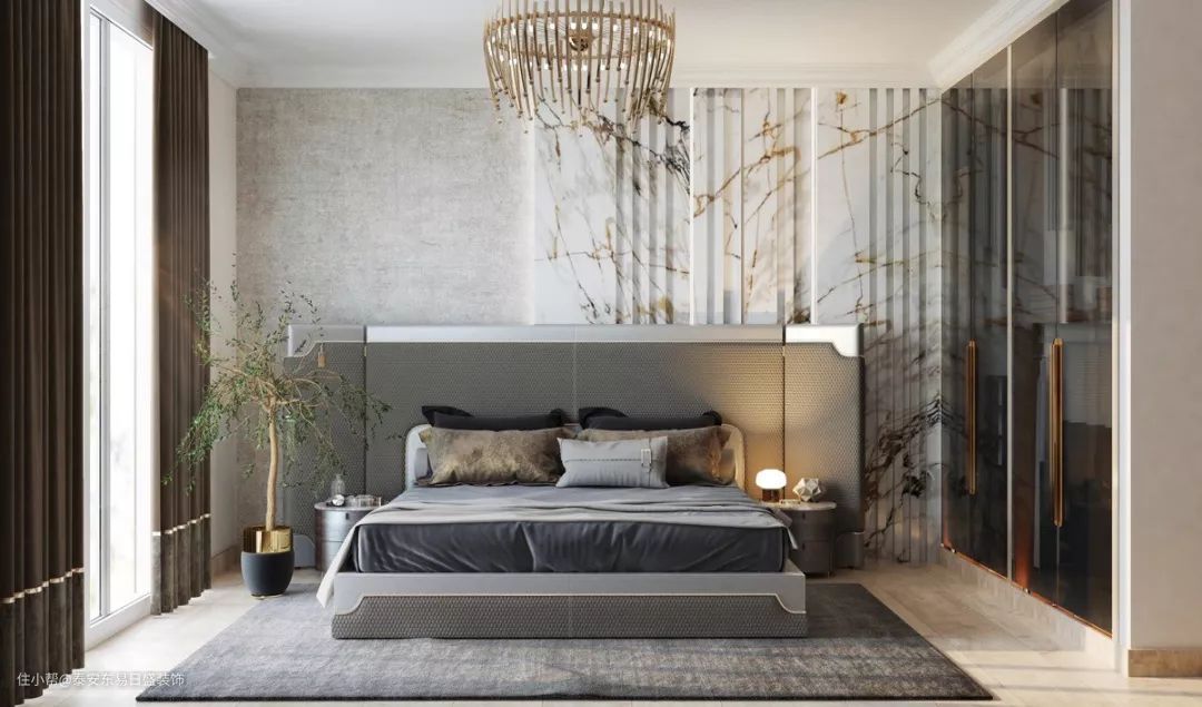 卧室墙面用大理石,浅浅的淡雅色调与丰富的肌理,完美的融合,硬朗中又不失柔和。