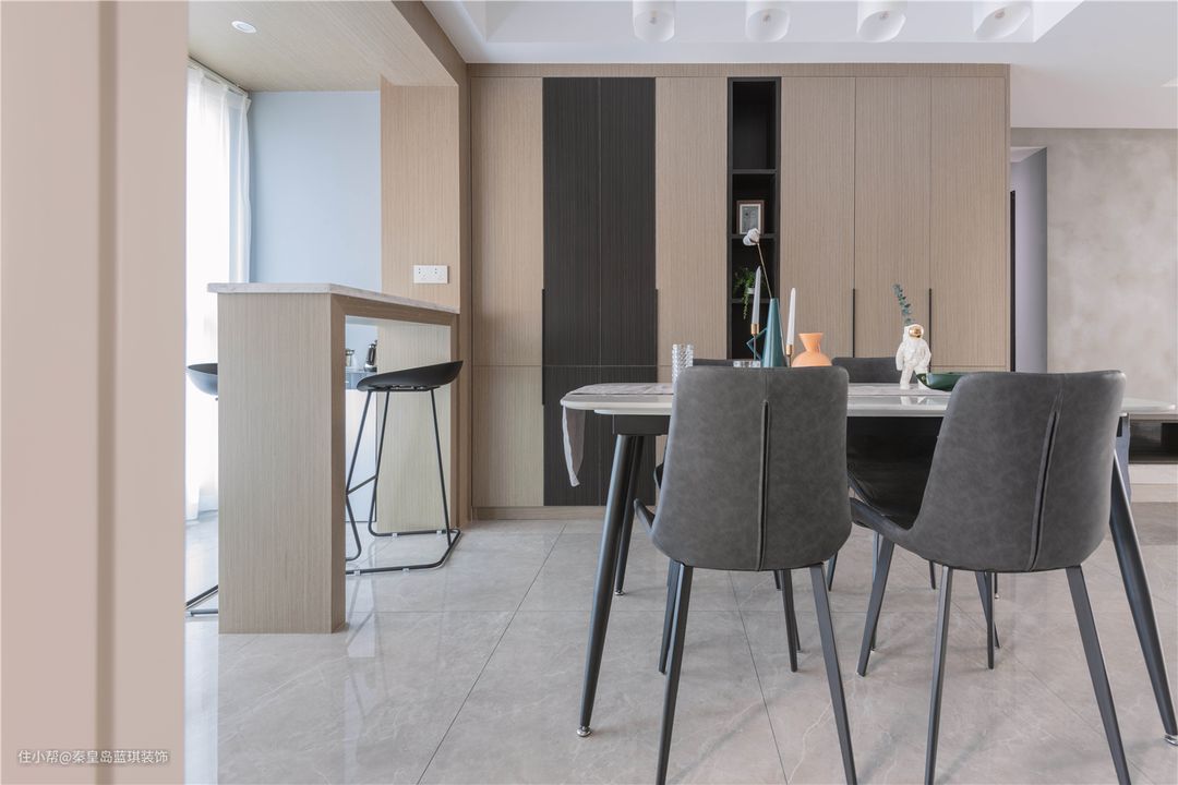 而且还打通阳台,做出一个小吧台的空间,合理利用,非常聪明的选择。