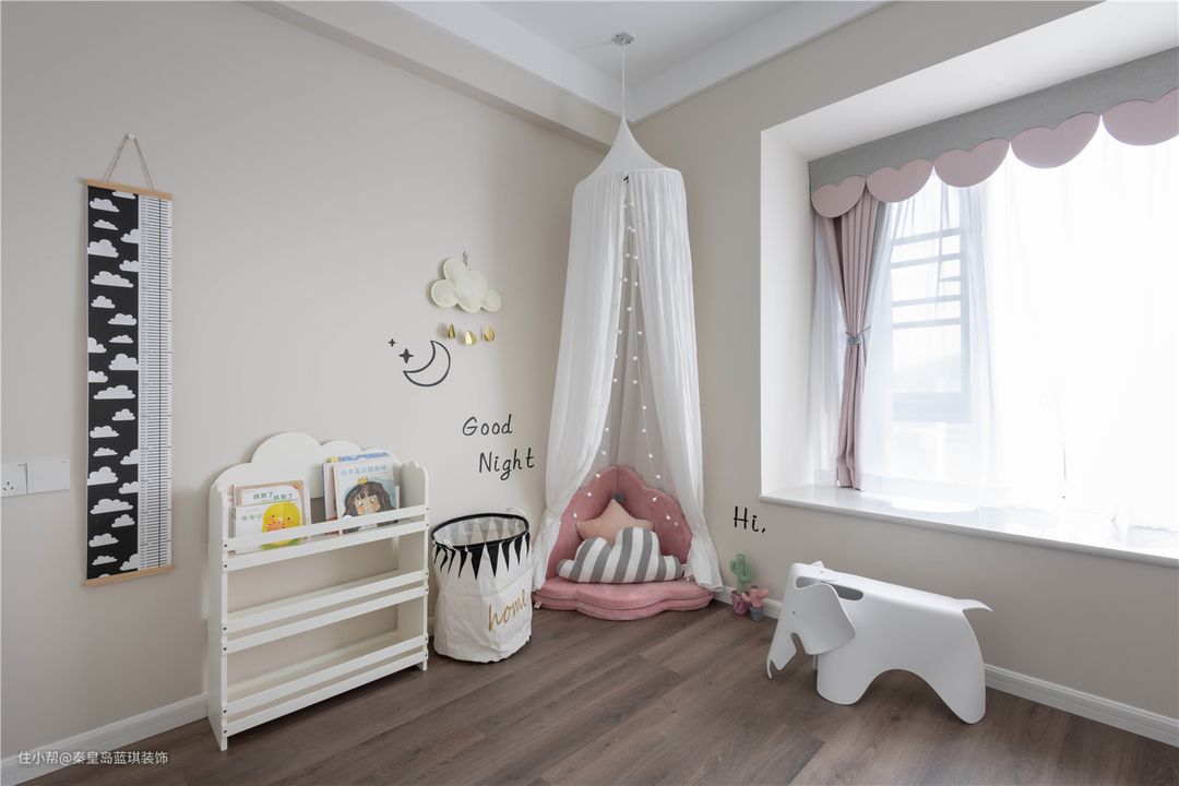 儿童房的小角落做了一个小帐篷,非常公主很有少女心,也是小朋友的游戏区。