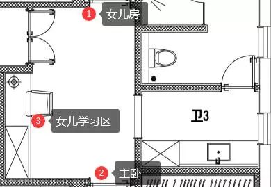 其实这个书房并不属于儿童房区域,但是因为它是女儿专属的学习区,也方便大家理解,一并在这一块讲解,在平面上它是这样的: