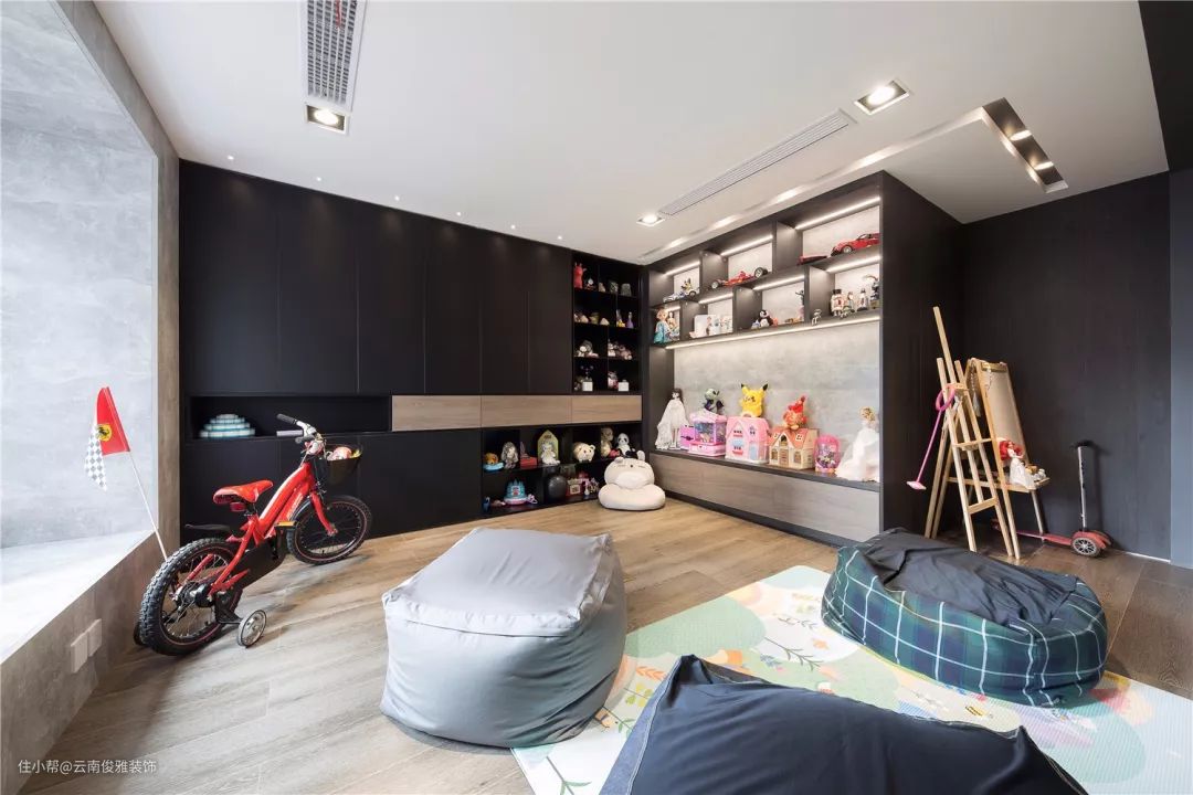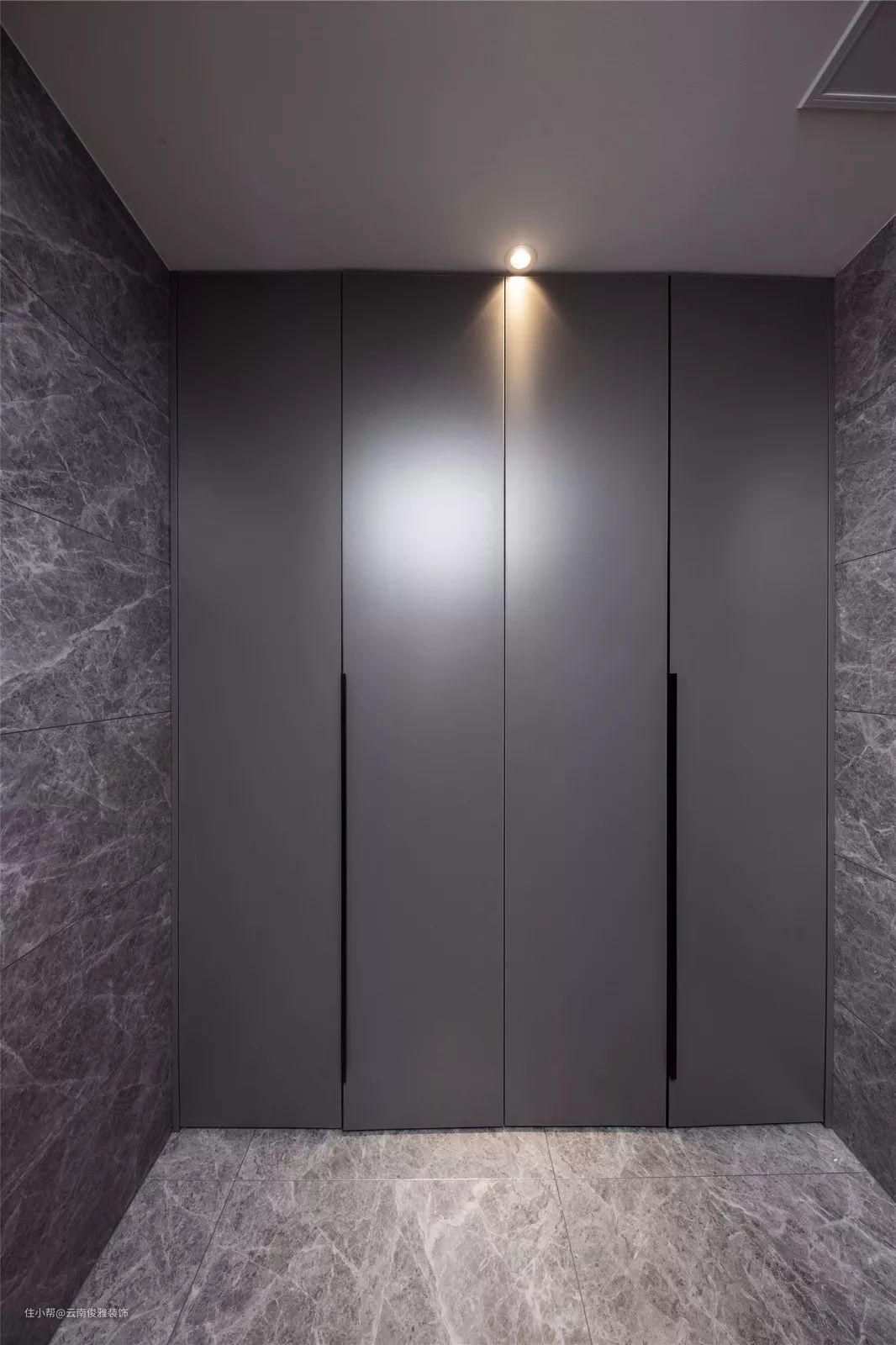 全房柜体都是采用到顶设计,也就是俗称的“大白”,这里用了大量黑色,那叫它什么好呢?无拉手设计更显简洁,都是在设计之初就留下了拉槽,机智吧(此处应该给设计师一点掌声)