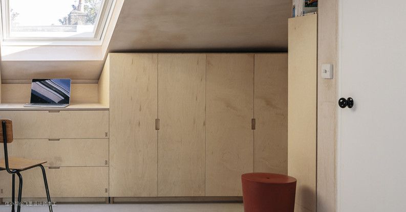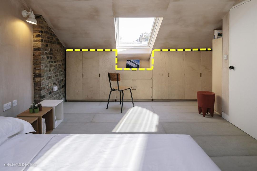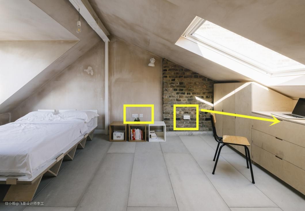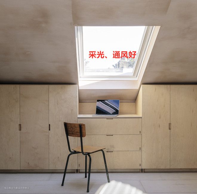 柜体还能作为保护层存在,起到降噪隔热的作用。但仔细看,在天窗下方的书桌区,忘了预留插座,手机、电脑充电还得拉插线板,使用起来有点不方便,大家做这样设计的时候,千万得考虑周到再动工。