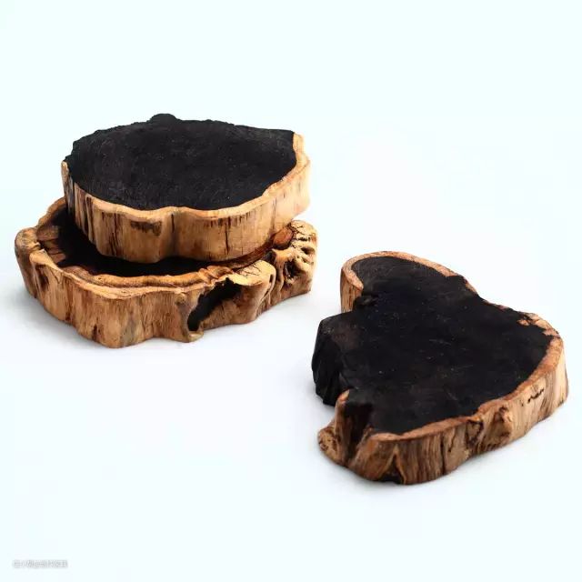 ① 沉香木植物树心部位当受到外伤或真菌感染刺激后,会大量分泌带有浓郁香味的树脂。这些部分因为密度很大,又被称为“水沉香”。燃烧时的浓烟散发出强烈香气,并有黑色油状物渗出。