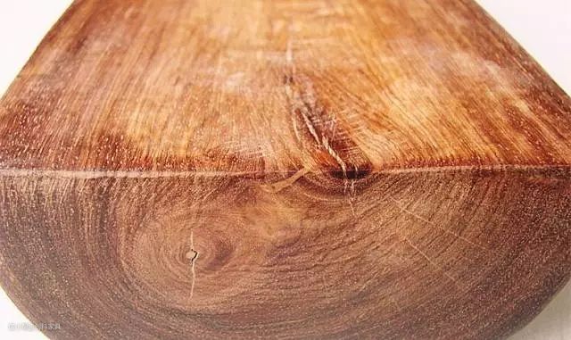 ② 白花崖豆木,即缅甸鸡翅木,产地在缅甸。心材黑褐或栗褐色,常带黑色条纹;管孔肉眼可见;密度大,沉于水;材质光滑细腻。树心有沙石心,即类似沙石一样的东西,并呈放射状的纹路由树心向外扩展。