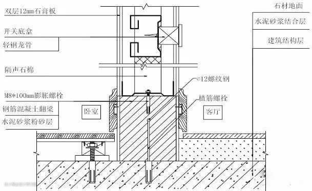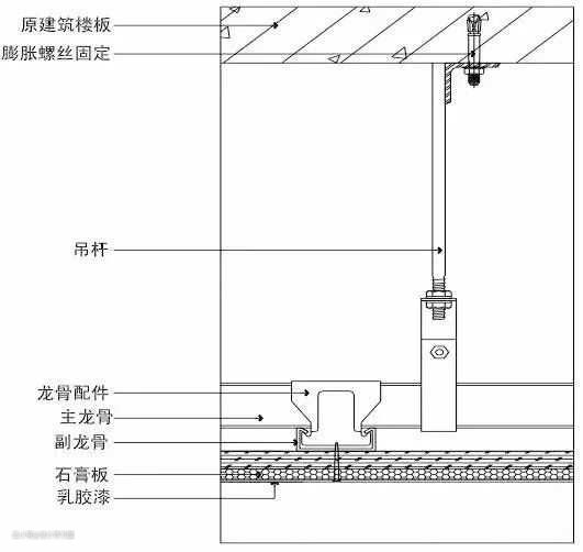 a.轻钢龙骨吊顶,主挂件间距600—800mm,采用6—8mm吊杆,主龙骨间距小于等于1000mm,主挂件距主龙骨顶端小于等于300mm,次龙骨间距小于等于400mm,加强次龙骨间距小于等于1200mm,封两封墙需石膏板饰面。