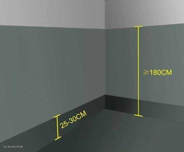 3.墙面处理也很重要。在一般的卫生间防水处理中,墙面上也要做大约180厘米高的防水涂料,以防积水洇透墙面。