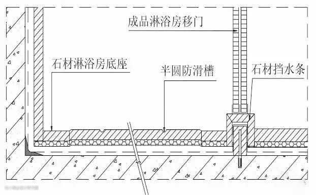 6.沐浴房地面石材施工工艺:地面清理→水泥浆结合层→铺贴石材 →养护→晶面处理
