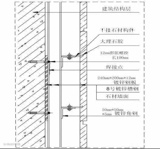 9.墙面石材干挂施工工艺:石材排板放线→安装钢骨架→石材安装→打胶收口