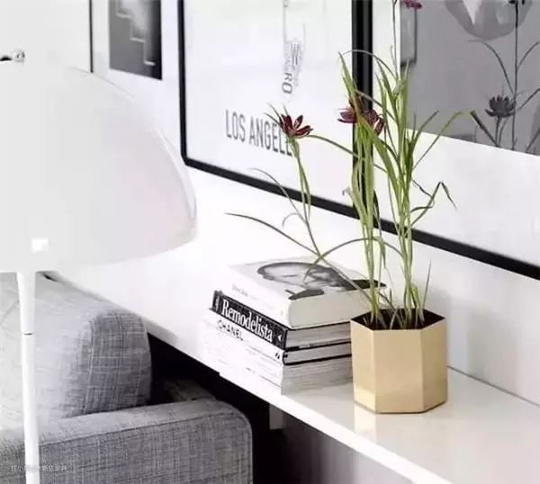 所以,在沙发后面安装一排搁板,不仅能随手放书,瞬间让沙发成为阅读区,还能放几盆绿植,变成室内多肉植物园。