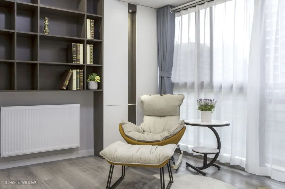 19、书柜设计开放格,底部预留位置专门放置暖气片,美观又实用。