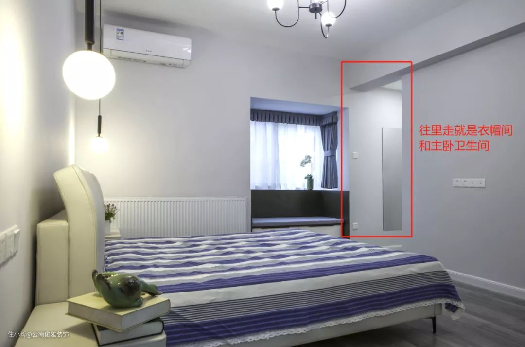 28、改变了原始衣帽间的动线,设计出了转折路线,隐私性更高。且为了避免镜子对着床,改变了全身镜的摆放位置。