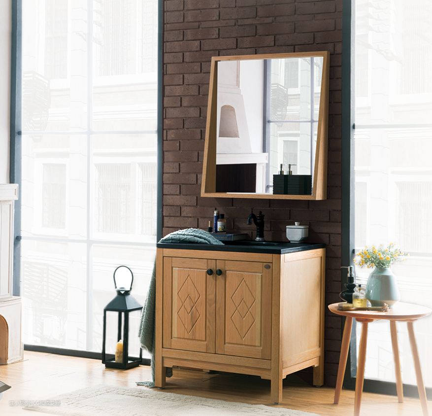 实木浴室柜的基材是橡木、松木等,柜体经过蒸馏脱水,以及多道防水处理工艺加工而成。具有档次高、质地坚硬、环保健康、纹理自然等特点,由于实木浴室柜有经过烘干防水处理,因此其具有较高的防潮性能。以业内领军品牌和成卫浴实木浴室柜示例,该品牌实木浴室柜主材采用红橡木,加厚门板,通过运用榫卯工艺制作,结构更坚固耐用,再加上高品质五金配件的加持,可达到有效防止开裂变形、防虫、防腐、防潮、经久耐用、开合静音等作用。
