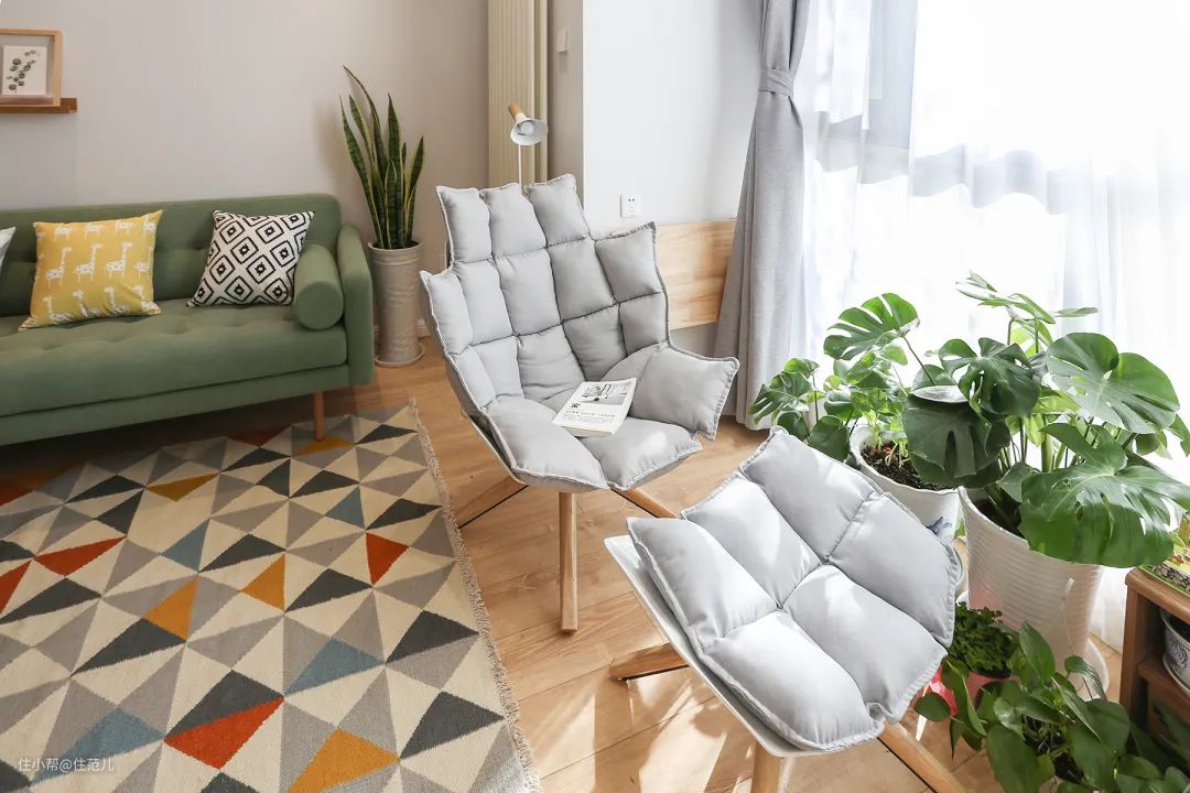 配有脚凳的躺椅,舒适度更高——毕竟脚不用搭在茶几上了,而且不像普通沙发一样身体会往下溜,也很适合小睡。