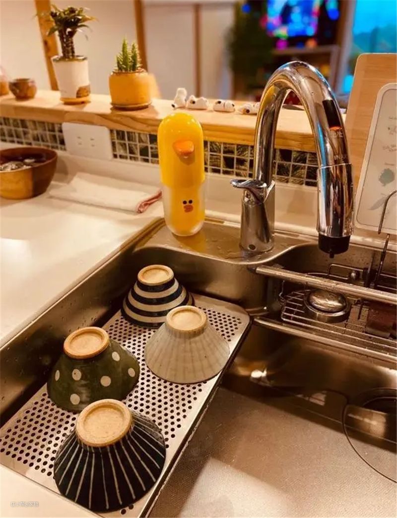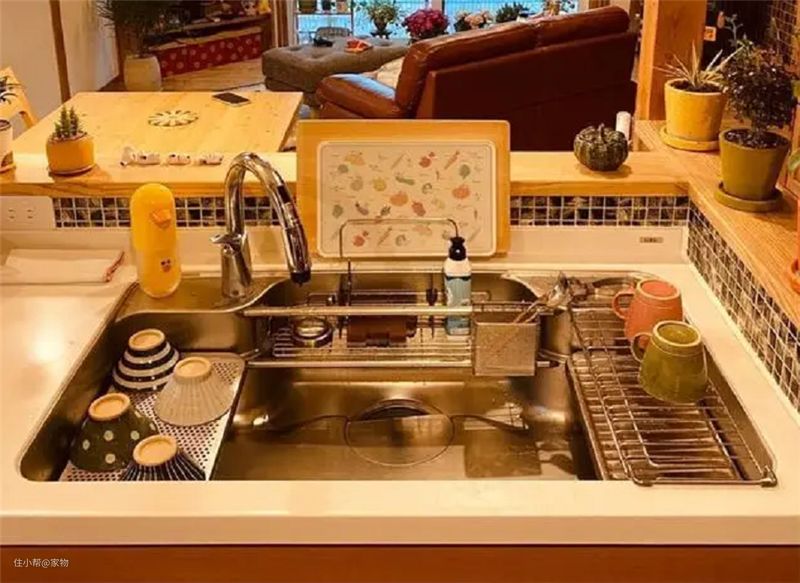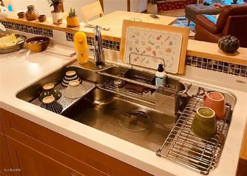 这样不仅方便清洗厨具,清洗洗碗池也能变得很轻松,