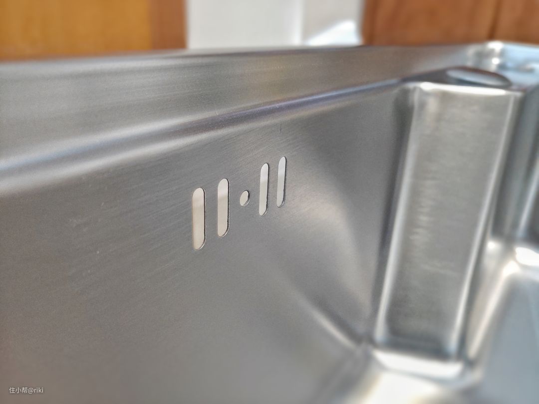 底部是防冷凝的涂层,有效减少水槽凝水,避免橱柜受潮腐坏,这对于我们这种南方家庭是很重要的。