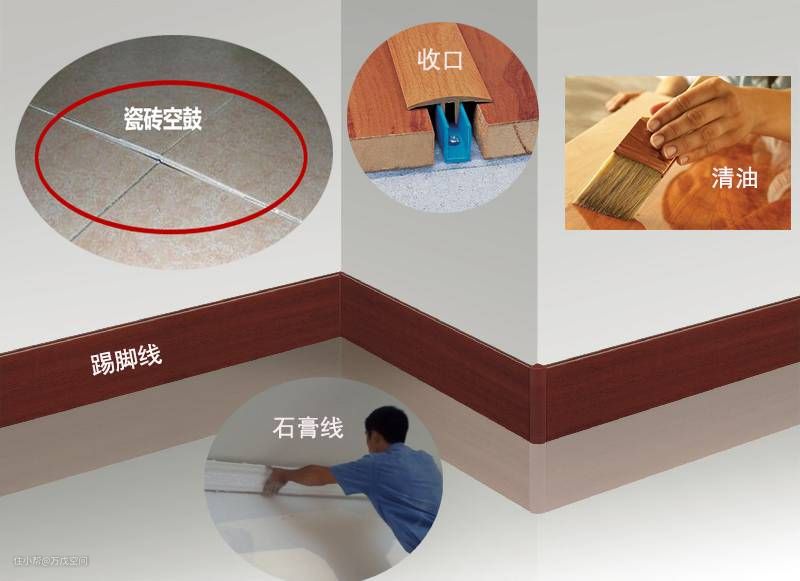 3、收口:装修中裸露在外的交接部位,为了美观,用木条线或收口条覆盖,称之为收口。