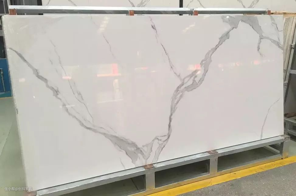 据了解岩板是由天然石料和无机粘土经特殊工艺,采用真空挤压成型和自动封闭式电脑控温辊道窑烧制1300度而成,是目前最薄(仅3mm),现有最大规格(3600×1200mm)