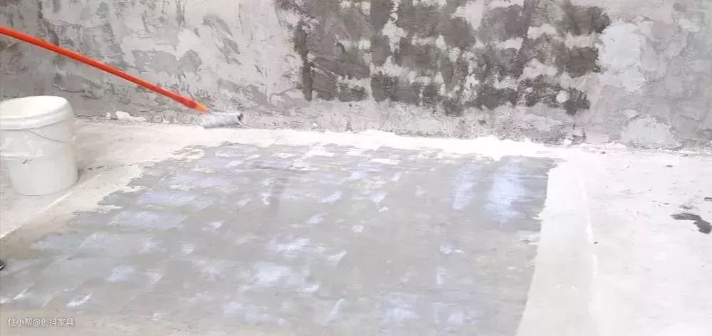 02 刷涂界面剂/ 采用滚筒将界面剂均匀刷涂墙面/地面粘贴面,静置2h后方可粘贴。