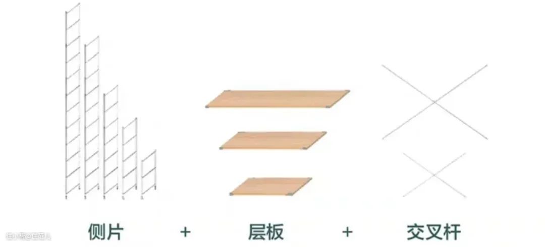 置物架是用层板和支架(侧片+交叉杆)组合而成的,用作收纳,还具有一定的展示功能,最常见的就是壁挂式置物架和落地式置物架。