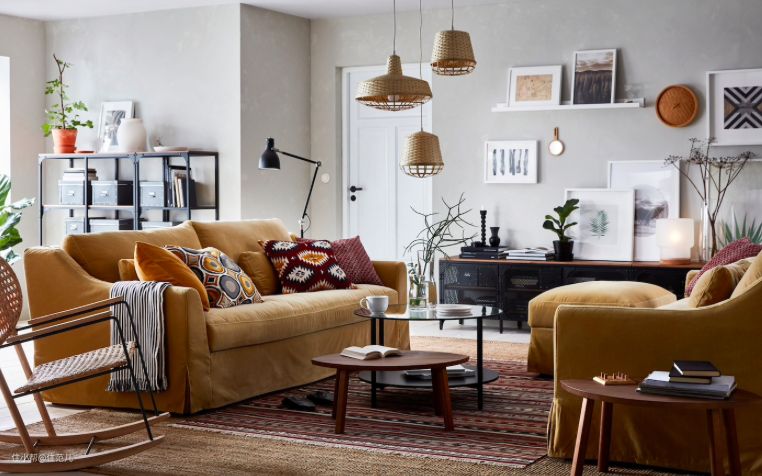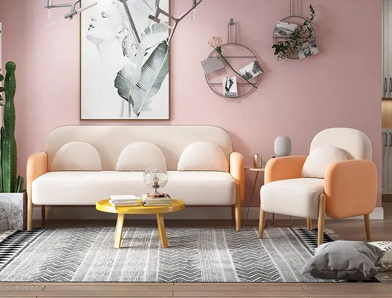 无论是沙发、茶几这样的大件还是抱枕地毯或者灯具,都还有很强的北欧设计元素,就连精致的小配件都能嗅到北欧风的味道。