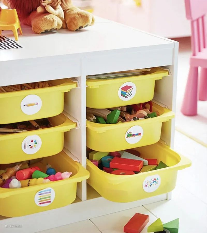 底部带有小轮子,可以灵活决定它的摆放位置,玩累了还可以坐一坐,兼具收纳和趣味性。