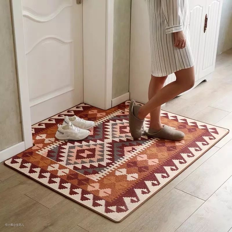 玄关处最容易积灰落尘,轻巧易洗的化纤地毯是不错的选择。
