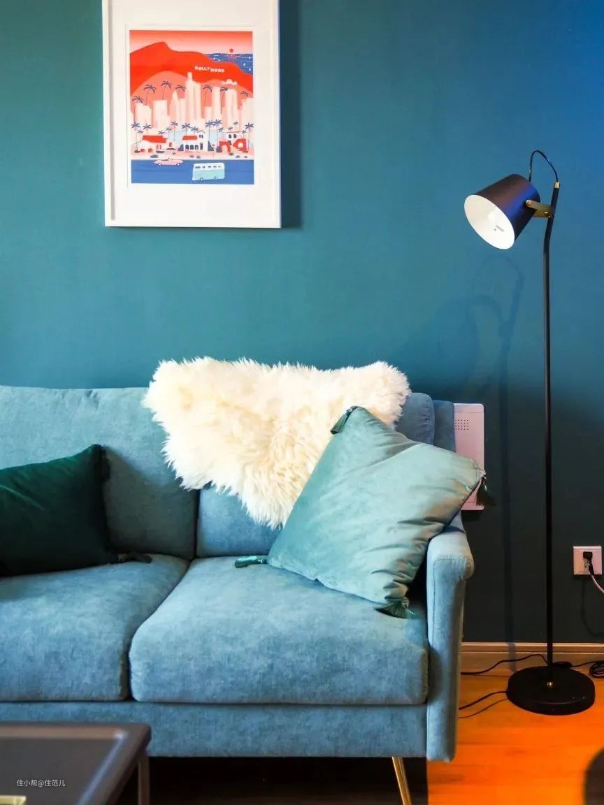 帮助整个环境跳脱出固有的风格,比如一面色块墙,或同样是灰色沙发、白墙、木地板,加了一块异域风情的地毯,再搭配上同色系的抱枕,就和之前完全不一样了。