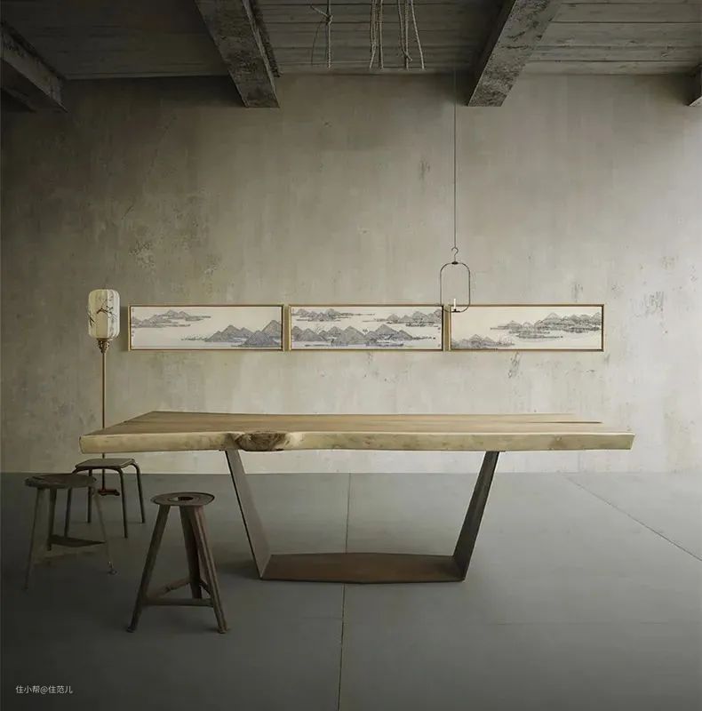 较传统的线描花鸟和山水画,淡雅素净,就很适合木制家具居多的中式风格。