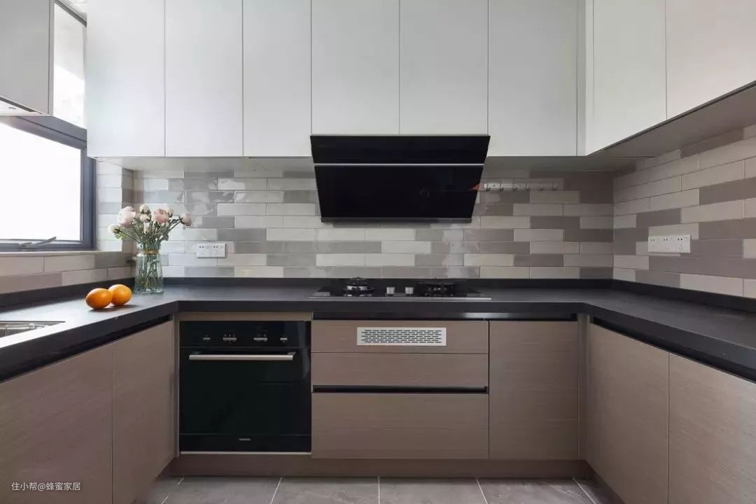 根据U型布局的格式特点,分区设计储物,将物品按照需求归纳摆放,不仅整洁合理,而且还更大空间的利用了厨房。