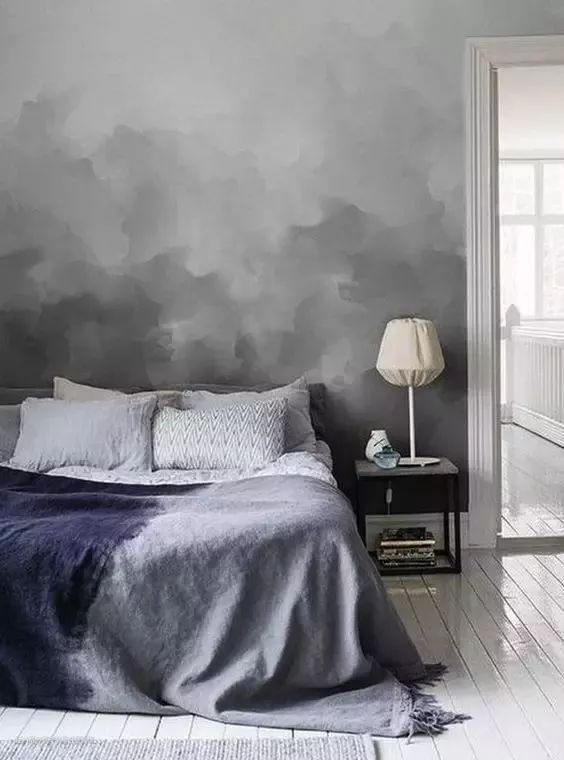 卧室里想来点特别的,还可以刷成渐变水墨画,逼格满满,一看就非常有个性。
