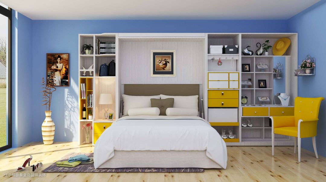 没有到顶的衣柜,由于衣柜没到顶,所以衣柜顶部容易落上灰尘,不易清理,容易成为卫生死角。