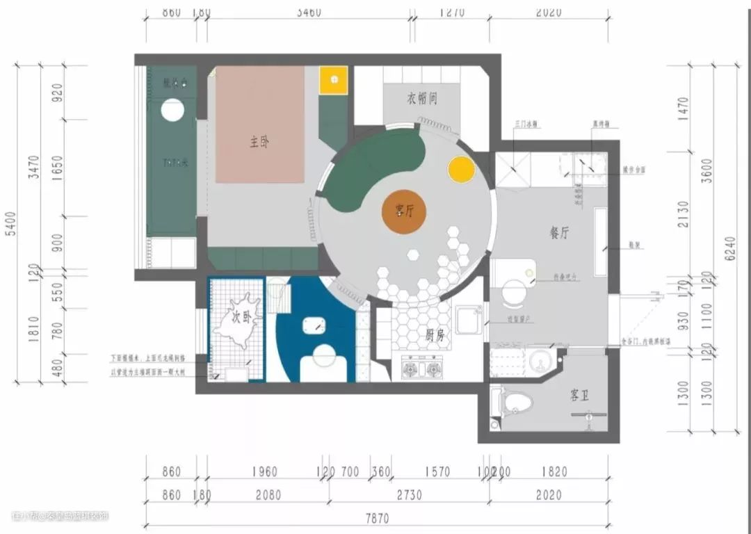 52平的混搭风小户型,做个圆形的客厅,布局和设计都好奇妙