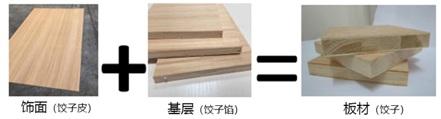 板材都是由表皮饰面层和中间基层构成,就好比饺子: