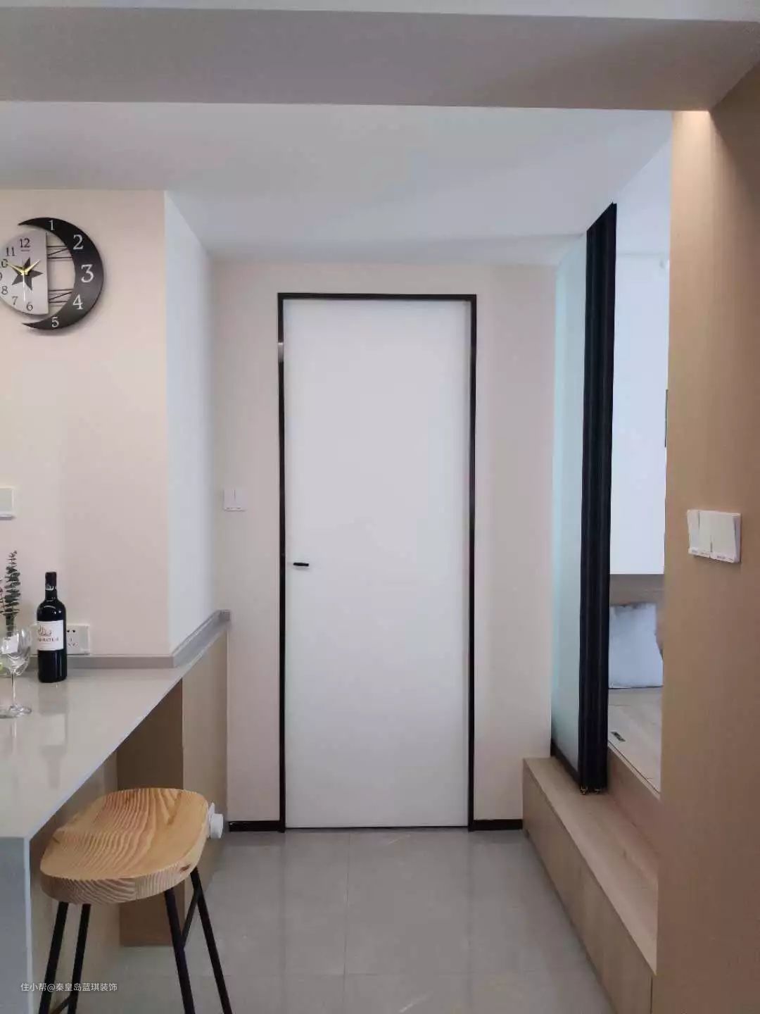 在入户门的另一侧做了一个小吧台,厨房门外的小吧台能够增添一些情调感,整体开放式的布局也让人感觉非常的宽敞和明亮。