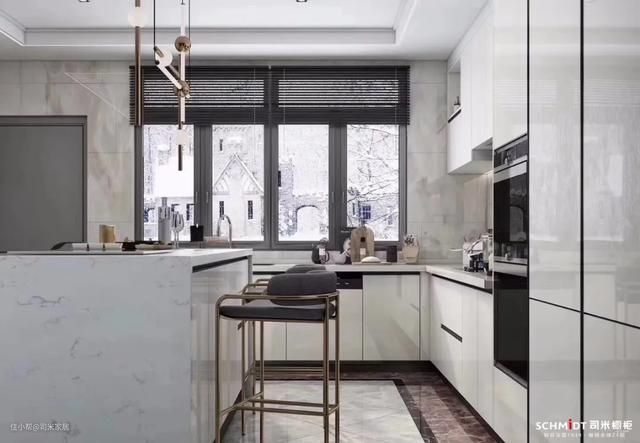 近年来在家居界流行的隐形式拉手橱柜,彰显厨房极简轻奢质感,不用一丝多余的装饰,简简单单就能让厨房洋溢着高级。