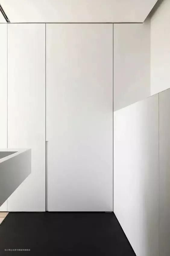 无论是卫生间门还是卧室门,都可以尝试做隐形式的,而且门最好做成可以自动关闭的,将门“藏”进墙里或者柜子里,不开门的时候完全可以忽略。