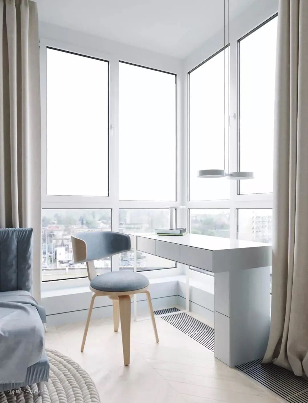窗台的空间直接设计书桌台或者休闲飘窗,可以在学累的时候看看外边的景色,缓解视觉的疲劳。